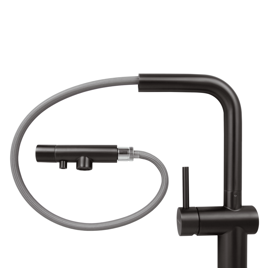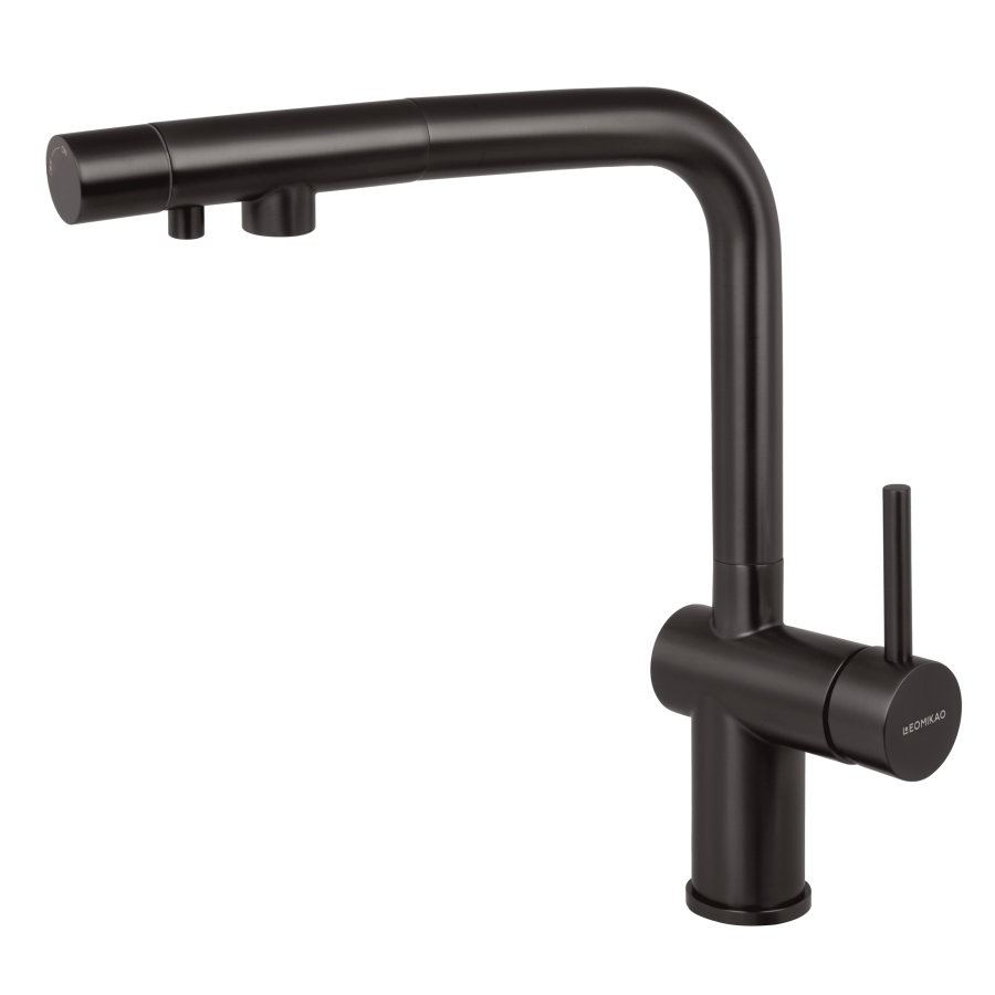 Leomikao SAITAMA-S Pro Filter BK Kitchen Faucet – a premium solution from Japanese engineers featuring a unique separate control system. The faucet has one lever for cold, hot, and filtered water supply, ensuring maximum comfort in use.