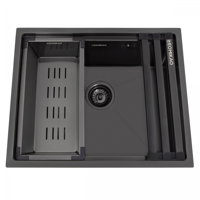 Кухонна мийка TOKIO 500-U GM - це сучасна та практична мийка виготовленна з високоякісної нержавіючої сталі SUS 304 товщиною 1-3 mm PVD покриттям ,що забезпечує її довговічність і стійкість до корозії та щедрою комплектацією: коландер та ролмат(складаний килимок)